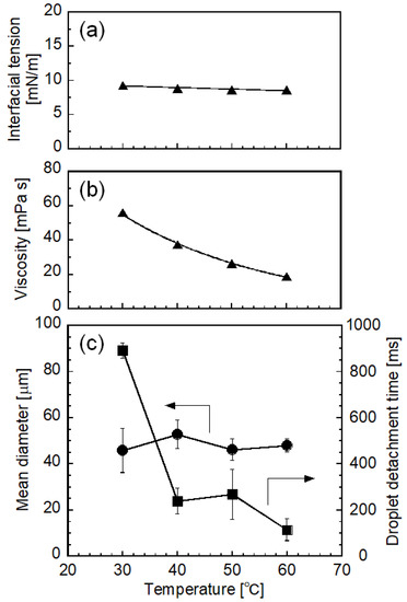 - Fujiu, K.B.; Kobayashi, I.; Uemura, K.; Nakajima, M. Temperature effect on microchannel oil-in-water emulsification. Microfluid. Nanofluid. 2011, 10, 773–783. [Google Scholar] [CrossRef]