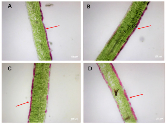 3.2. Anatomical Observation of Leaf