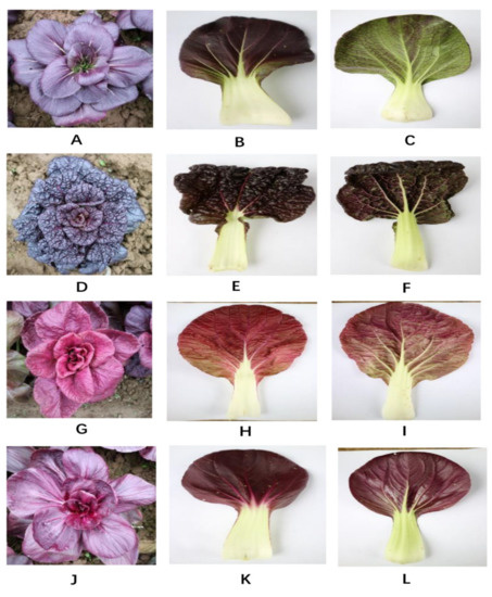 - Zhang, L.; Xu, B.; Wu, T.; Yang, Y.F.; Fan, L.X.; Wen, M.X.; Su, J.X. Transcriptomic profiling of two Pak Choi varieties with contrasting anthocyanin contents provides an insight into structural and regulatory genes in anthocyanin biosynthetic pathway. BMC Genomics 2017, 18, 288. [Google Scholar] [CrossRef]