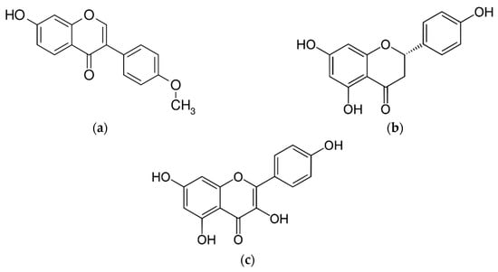 Chemical structures of phenolic compounds (a) Formononetin; (b) Narigenin; and (c) Kaempferol.