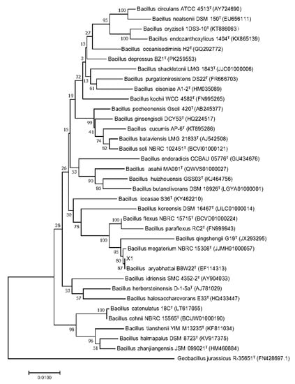 Phylogenetic tree of X1 16S rRNA with other Bacillus strains.