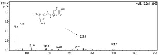 As shown in Figure 3, under positive ionization mode, an ion with 229.1 was detected from the biotransformation product of X1, which was in accordance with the [M + H]+ mass data of resveratrol.