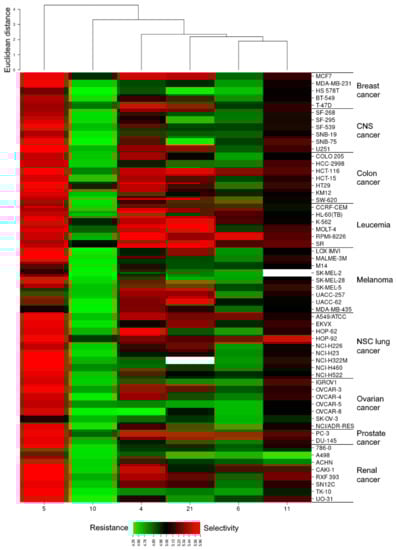 - Reinhold, W.C.; Sunshine, M.; Liu, H.; Varma, S.; Kohn, K.W.; Morris, J.; Doroshow, J.; Pommier, Y. CellMiner: A Web-Based Suite of Genomic and Pharmacologic Tools to Explore Transcript and Drug Patterns in the NCI-60 Cell Line Set. Cancer Res. 2012, 72, 3499–3511. [Google Scholar] [CrossRef] [PubMed]