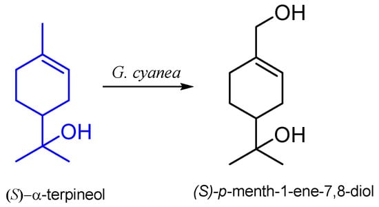| (S)-(−) | Gibberella cyanea DSM 62719 | p-menthene-7,8-diol | [42] |