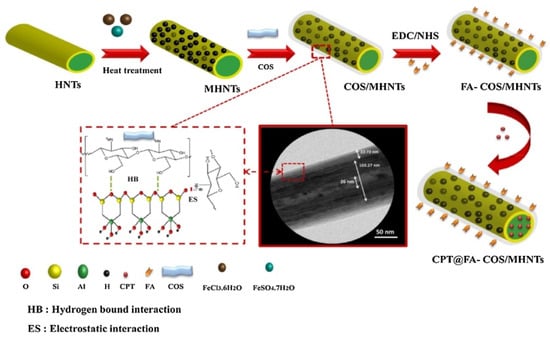 - Dramou, P.; Fizir, M.; Taleb, A.; Itatahine, A.; Dahiru, N.S.; Mehdi, Y.A.; Wei, L.; Zhang, J.; He, H. Folic acid-conjugated chitosan oligosaccharide-magnetic halloysite nanotubes as a delivery system for camptothecin. Carbohydr. Polym. 2018, 197, 117–127. [Google Scholar] [CrossRef]
