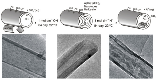- Abdullayev, E.; Joshi, A.; Wei, W.; Zhao, Y.; Lvov, Y. Enlargement of Halloysite Clay Nanotube Lumen by Selective Etching of Aluminum Oxide. ACS Nano 2012, 6, 7216–7226. [Google Scholar] [CrossRef] [PubMed]