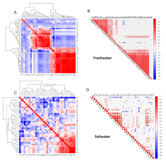 2.4. Principal Components Analysis and Elemental Correlation of All Water Samples around Upolu Island, Samoa