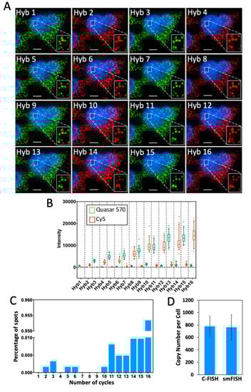 - Lubeck, E.; Cai, L. Single-cell systems biology by super-resolution imaging and combinatorial labeling. Nat. Methods 2012, 9, 743–748. [Google Scholar] [CrossRef]