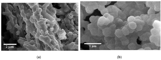 Scanning electron microscopy micrographs of: (a) SBA-S; (b) Ti-SBA-S materials.