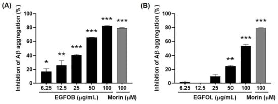 2.1. Inhibitory Effects of EGFOB and EGFOL on Aβ Aggregation