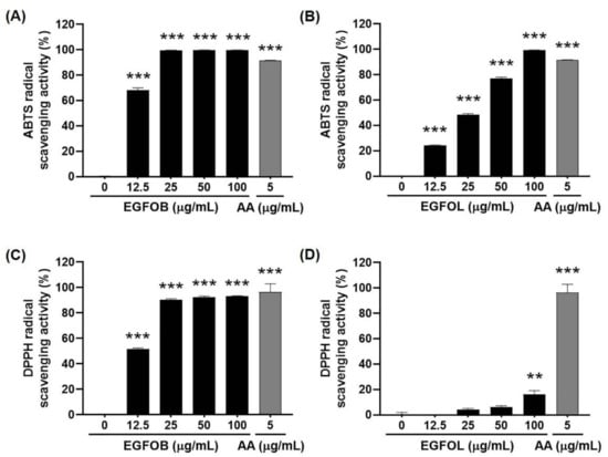 2.2. Antioxidant Effects of EGFOB and EGFOL