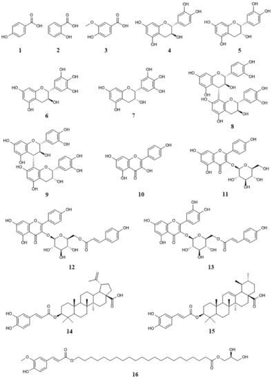 2.6. Antioxidant Effects of Compounds 1–16 from EGFOB
