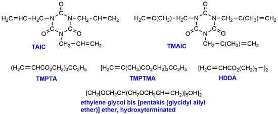Polyfunctional monomers have been applied predominantly in electron beam-induced crosslinking [27,30,31,32,33,34,35] although they have been also used for curing by γ-irradiation [36,37,38].