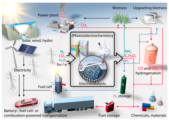 Sustainable energy future. Schematic of a sustainable energy landscape for the future based on electrocatalysis.