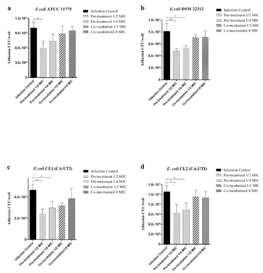 - Mulvey, M.A. Adhesion and entry of uropathogenic Escherichia coli. Cell. Microbiol. 2002, 4, 257–271. [Google Scholar] [CrossRef]