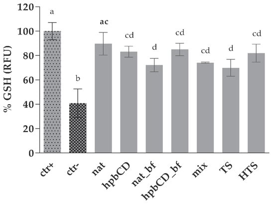- Čapek, J.; Hauschke, M.; Brůčková, L.; Roušar, T. Comparison of glutathione levels measured using optimized monochlorobimane assay with those from ortho-phthalaldehyde assay in intact cells. J. Pharmacol. Toxicol. Methods 2017, 88, 40–45. [Google Scholar] [CrossRef]