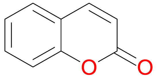 Coumarins have anti-inflammatory and antioxidant activity [163], they are anticoagulatory in the liver and are anticancerous by inhibiting the microtubule and arresting tumor cells [164]. They are also antiallergic and antiproliferative in their activity [165,166]. They exhibit strong pharmacokinetics on the basis of their easily absorbable and metabolizable nature [167]. In addition, coumarins readily function as antitumor agents and are significant because they have the capacity to counteract the side effects usually identified with the chemo and radiotherapeutic procedures [168,169,170]. Studies have identified the cytotoxic activity of coumarin compounds against leukemia cell lines (HL-60; NALM-6) and colon tumor-8 [171,172]. Figure 17 depicts the molecular structure of coumarin.