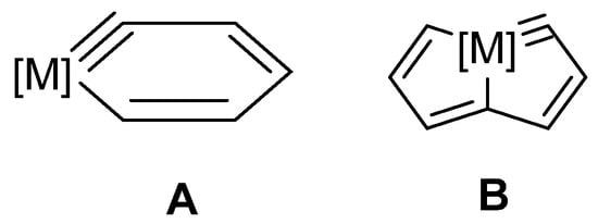 - Landorf, C.W.; Haley, M.M. Recent Advances in Metallabenzene Chemistry. Angew. Chem. Int. Ed. 2006, 45, 3914–3936. [Google Scholar] [CrossRef]