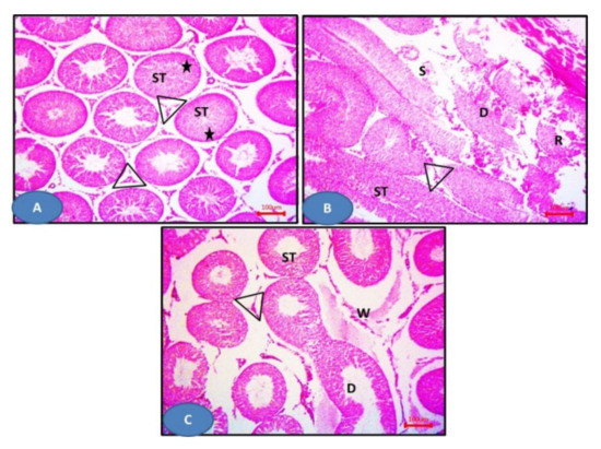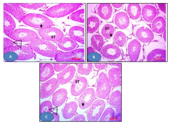 Throughout the previous work, results were consistent that motivated us to carry out a histopathological investigation of the tested compounds in the testis.