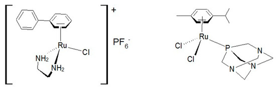 Complexes [η6-(biphenyl)Ru(en)Cl]PF6 [17,18,19,20,21] and [(η6-p-cymene)Ru(pta)Cl2] [22,23].