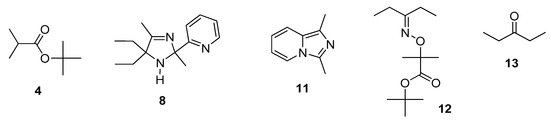- Edeleva, M.V.; Marque, S.R.A.; Bagryanskaya, E.G. Imidazoline and imidazolidine nitroxides as controlling agents in nitroxide-mediated pseudoliving radical polymerization. Russ. Chem. Rev. 2018, 87, 328–349. [Google Scholar] [CrossRef]