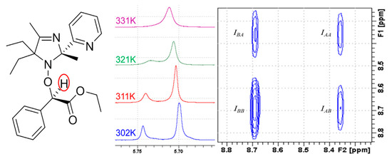 - Stephenson, D.S.; Binsch, G. Iterative computer analysis of complex exchange-broadened NMR bandshapes. J. Magn. Reson. (1969) 1978, 32, 145–152. [Google Scholar] [CrossRef]