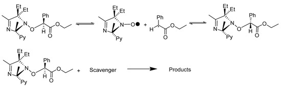 - Ananchenko, G.; Marque, S.; Gigmes, D.; Bertin, D.; Tordo, P. Diastereomeric excess upon cleavage and reformation of diastereomeric alkoxyamines. Org. Biomol. Chem. 2004, 2, 709–715. [Google Scholar] [CrossRef] [PubMed]