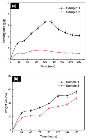 - Gupta, N.V.; Shivakumar, H. Investigation of Swelling Behavior and Mechanical Properties of a pH-Sensitive Superporous Hydrogel Composite. Iran. J. Pharm. Res. IJPR 2012, 11, 481–493. [Google Scholar] [PubMed]