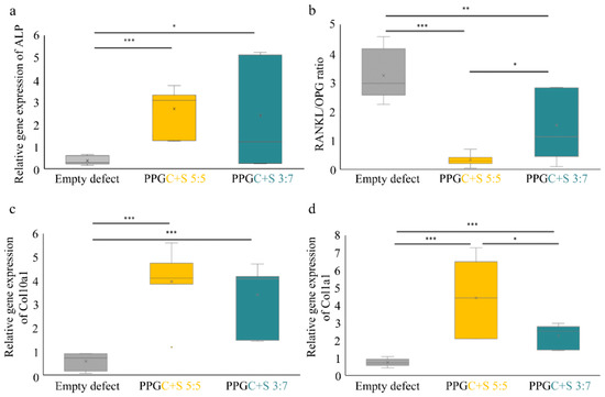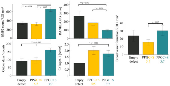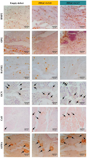 - For new bone formation: 1. Alkaline phosphatase (ALP), an osteoblast marker indicating bone mineralization; 2. Osteocalcin (OCN), a noncollagenous protein secreted by osteoblasts, which plays a role in mineralization and calcium ion homeostasis; 3. Collagen type10 alpha1 (Col10α1), a hypertrophic chondrocytes marker; 4. Runt-related transcription factor 2 (Runx2), an essential protein for osteoblastic differentiation; 5. Collagen type I alpha1, a major component of type I collagen, (Col1α1).