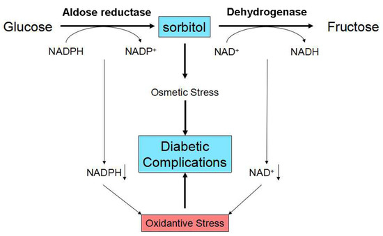 - Srivastava, S.K.; Ramana, K.V.; Bhatnagar, A. Role of aldose reductase and oxidative damage in diabetes and the consequent potential for therapeutic options. Endocr. Rev. 2005, 26, 380–392. [Google Scholar] [CrossRef]