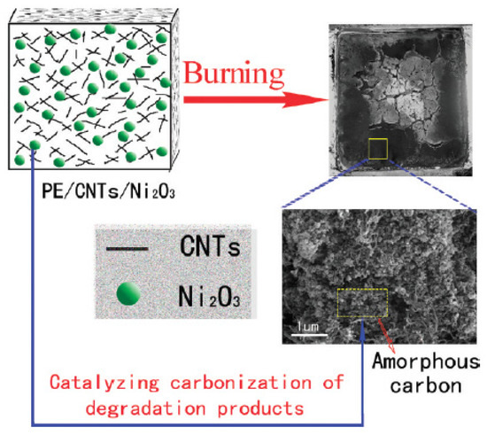 Schematic representation of the synergistic effect mechanism between Ni2O3 and MWCNTs on enhancing the flame retardancy of LLDPE, reprinted with permission from Ref. [142].