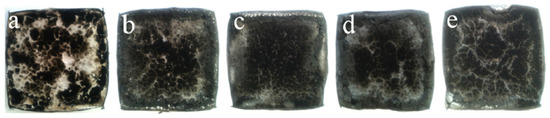 Photos of the residues after cone testing (100 ×100 mm2) of PE/ATH/GNPx, (a), x = 0.2 (b), x = 0.5 (c), x = 1.0 (d), and x = 1.5 (e), reprinted with permission from Ref. [143].