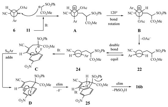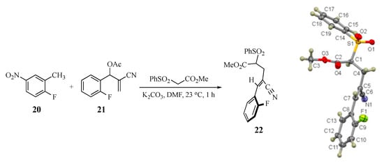 3.6. Competitive Reaction Control Experiment. Formation of Methyl (Z)-4-cyano-5-(2-fluorophenyl)-2-(phenylsulfonyl)-4-pentenoate (22)