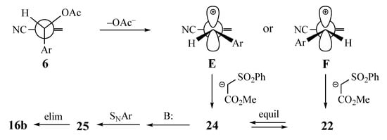 - Stork, G.; Kreft III, A.F. Concerning the stereochemistry of the SN2’ reaction. “Concerted” allylic displacement in an acyclic system: Anti displacement with thiolate anion. J. Am. Chem. Soc. 1977, 99, 3851–3852. [Google Scholar] [CrossRef]