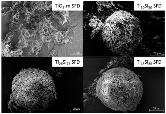 3.1.3. Preparation of TiSi Titania-Silica Nanocomposites by Spray-Freeze-Drying (SFD)