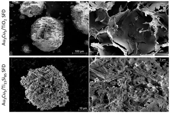 2.1.3. Characterization of Ti15Si85 SFD and TiO2-m SFD Supported Au3Cu1 Nanoparticles