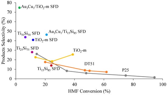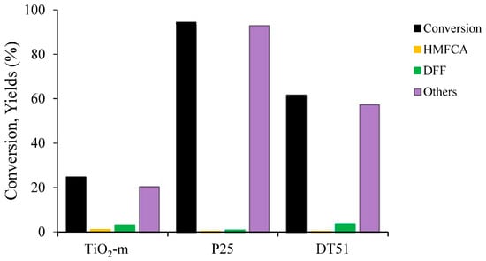 - Ulyankina, A.; Mitchenko, S.; Smirnova, N. Selective photocatalytic oxidation of 5-HMF in water over electrochemically synthesized TiO2 nanoparticles. Processes 2020, 8, 647. [Google Scholar] [CrossRef]