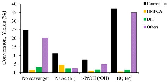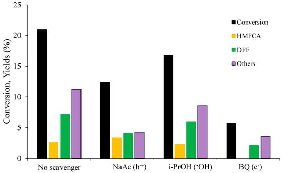 - Gonzalez-Casamachin, D.A.; Rivera De la Rosa, J.; Lucio–Ortiz, C.J.; Sandoval-Rangel, L.; García, C.D. Partial oxidation of 5-hydroxymethylfurfural to 2,5-furandicarboxylic acid using O2 and a photocatalyst of a composite of ZnO/PPy under visible-light: Electrochemical characterization and kinetic analysis. Chem. Eng. J. 2020, 393, 124699. [Google Scholar] [CrossRef]