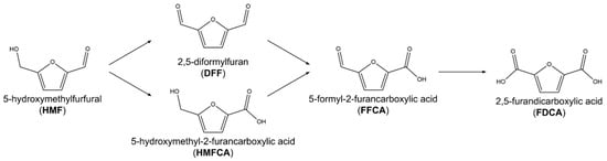 - 5-hydroxymethyl furfural (HMF 99%, AVA Biochem, Muttenz, Switzerland), 2,5-diformylfurane (DFF 99.99%, Toronto Reserch Chemicals, North York, ON, Canada), 5-hydroxymethyl-2-furancarboxylic acid (HMFCA 99.99%, Toronto Reserch Chemicals, North York, ON, Canada), and 5-formyl-2-furancarboxylic acid (FFCA 99.99%, Toronto Reserch Chemicals, North York, ON, Canada) were used as substrate (in case of HMF) and external standards for HPLC calibrations.