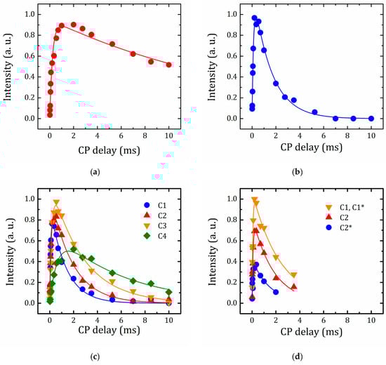 The TCH and T1ρ(H) parameters for all the carbon sites of the studied organic molecules, as determined from the dependencies shown in Figure 10 applying Equation (1), are listed in Table 3.
