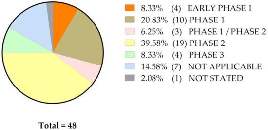 The inclusive criteria and final goals are highly variable, which leads to stratifying these studies in different stages of clinical trials, as shown on Figure 2.