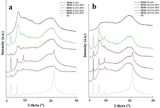 XRPD spectra of HPMC-5 and HPMC-15 films. (a) HPMC-5; (b) HPMC-15.
