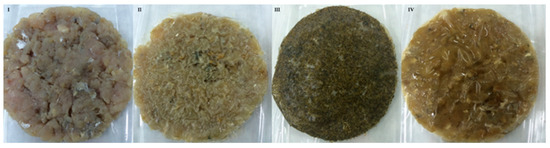 Fish burger from Atlantic horse mackerel coated with different film formulations (control without coating film—I, chitosan—II, sea fennel plant (SFP)—III incorporated in a chitosan-based film and sea fennel extract (SFE) incorporated in a chitosan-based film—IV).