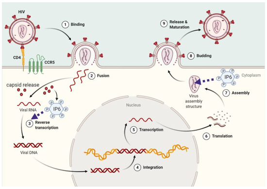 - Dick, R.A.; Zadrozny, K.K.; Xu, C.; Schur, F.K.M.; Lyddon, T.D.; Ricana, C.L.; Wagner, J.M.; Perilla, J.R.; Ganser-Pornillos, B.K.; Johnson, M.C.; et al. Inositol phosphates are assembly co-factors for HIV-1. Nat. Cell Biol. 2018, 560, 509–512. [Google Scholar] [CrossRef] [PubMed]