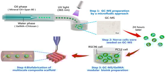 - Chen, J.; Huang, D.; Wang, L.; Hou, J.; Zhang, H.; Li, Y.; Zhong, S.; Wang, Y.; Wu, Y.; Huang, W. 3D bioprinted multiscale composite scaffolds based on gelatin methacryloyl (GelMA)/chitosan microspheres as a modular bioink for enhancing 3D neurite outgrowth and elongation. J. Colloid Interface Sci. 2020, 574, 162–173. [Google Scholar] [CrossRef] [PubMed]