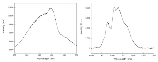 - Monguzzi, A.; Tubino, R.; Meinardi, F.; Biroli, A.O.; Pizzotti, M.; Demartin, F.; Quochi, F.; Cordella, F.; Loi, M.A. Novel Er3+ perfluorinated complexes for broadband sensitized near infrared emission. Chem. Mater. 2009, 21, 128–135. [Google Scholar] [CrossRef]