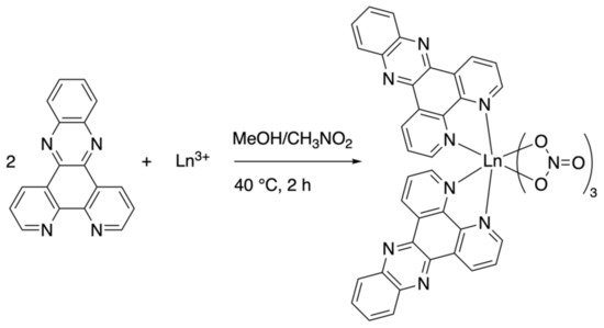 - Dasari, S.; Patra, A.K. Luminescent europium and terbium complexes of dipyridoquinoxaline and dipyridophenazine ligands as photosensitizing antennae: Structures and biological perspectives. Dalton Trans. 2015, 44, 19844–19855. [Google Scholar] [CrossRef]