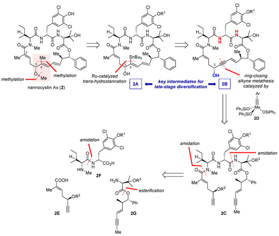 - Liu, R.; Xia, M.; Zhang, Y.; Fu, S.; Liu, B. The journey of total synthesis toward nannocystin Ax. Tetrahedron 2019, 75, 1781–1794. [Google Scholar] [CrossRef]