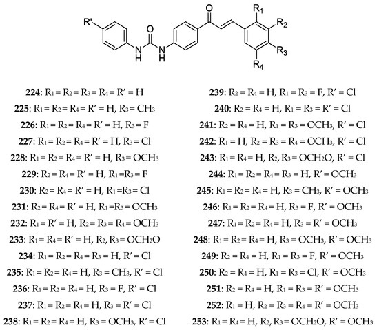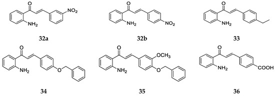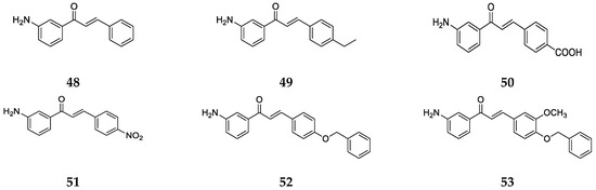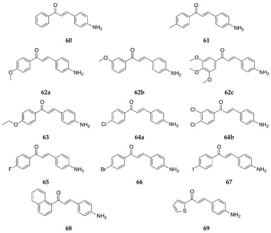 4-Aminochalcone derivatives with some other substitutions on ring B (Figure 12) were also synthesized and tested by Kozłowska et al. [42].