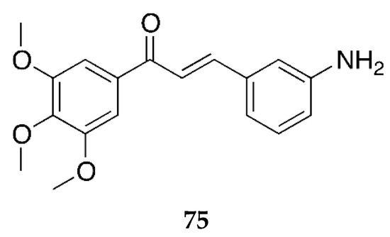 The most studied aminochalcone 1 contains a -NH2 substitution at position 4 on ring A (Figure 3). The amino group on ring A increases the magnitude of the positive charge on the olefinic carbon atom adjacent to ring B. This has been proposed to enhance the electrophilic attack of these compounds on cancerous cells [36].